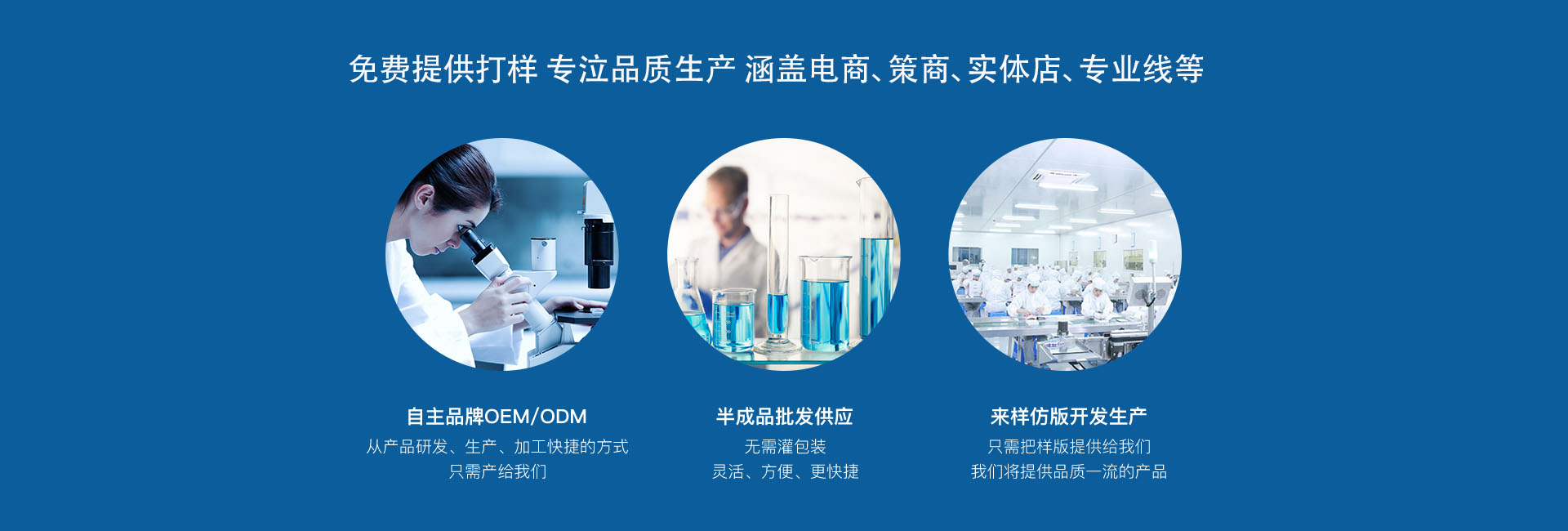 眾德生物科技以化妝品、面部功效型問題型肌膚用品科研,生產銷售、品牌策劃、OEM/ODM專業貼牌/代加工,微商/網商/視商凈膚美膚護膚品、面膜系列產品加工,一抹瘦減肥產品代加工,養生保健品代加工等。 珍貴原材料渠道眾多國際產地直供,國內外貿易服務的強大組合,造就眾德能生產出符合國際品質標準的物美質優價廉的,大眾喜愛的好產品。